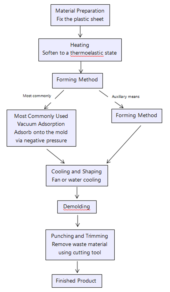 ప్రధాన సూత్రం: ప్లాస్టిక్ షీట్ను వేడి చేసి, మృదువుగా చేయండి, ఆపై దానిని అచ్చు ఉపరితలంపై శోషించడానికి వాక్యూమ్ని ఉపయోగించండి మరియు అది శీతలీకరణ తర్వాత ఆకారాన్ని తీసుకుంటుంది.